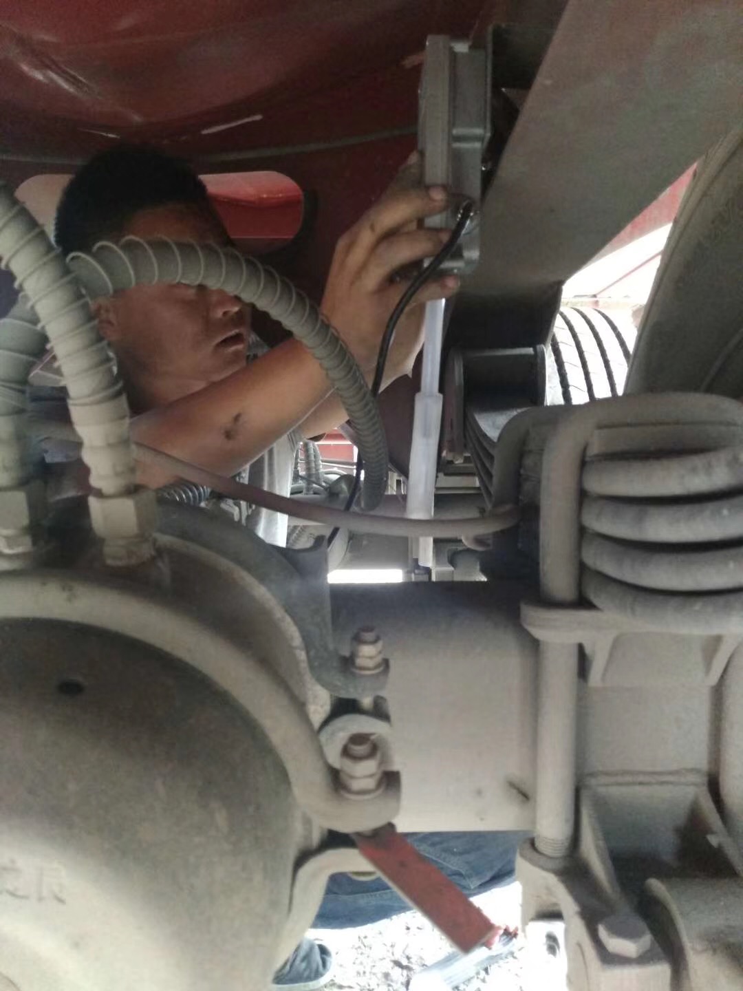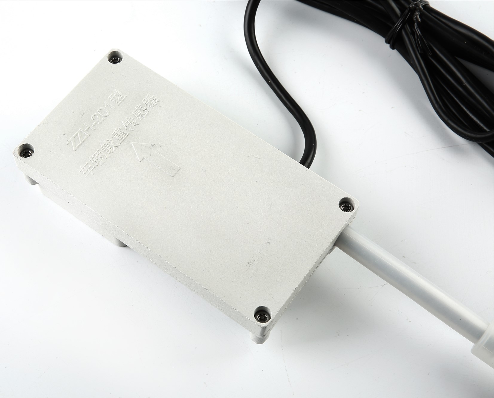 ZZH-301型車輛載重傳感器通過采集車架與車橋間距離變化從而判斷車輛載貨重量的一種傳感器。所以傳感器安裝在車橋(兩側(cè)車輪的連接軸)上,拉繩用專用支架固定在車梁上。